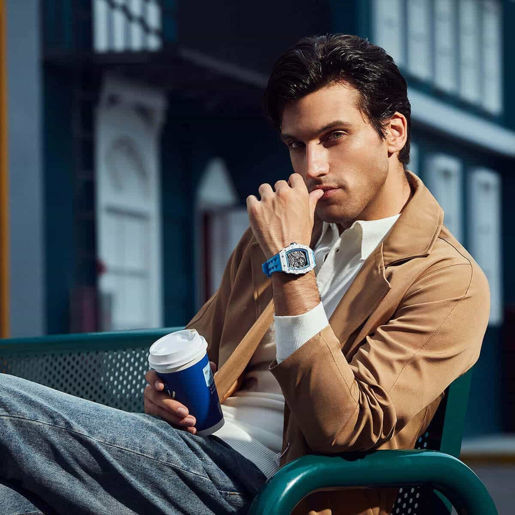 The watch has a 100% perfect texture and look. The stainless steel case of this watch is very textured, which makes the watch more advanced. With a soft silicone strap, it is very comfortable to wear on any occasion, and it matches well with clothes. It is indispensable for business travel or leisure sports.